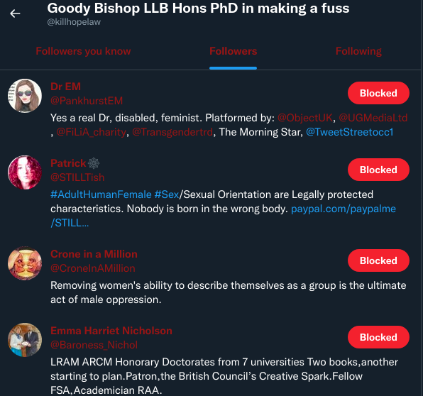 Another narrative promoted by gender critical accounts on twitter was to deny the harassment happened, with gender critical twitter users expressing doubts that the harassment was real, or responding as though it would be absurd that other gender critical twitter users would do such a thing - demanding proof that GC accounts were involved. This is in spite of the fact that a link to the harassment website the images came from were being shared in replies to a well-known anti-trans activist. The account sharing this link to a website notorious for stalking, harassment and abuse is also followed by large gender critical accounts and influential gender critical activists, including a member of the UK's House of Lords.