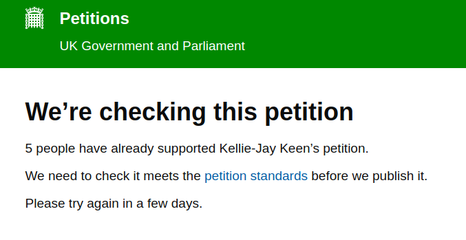 Minshull has since opened a renewed petition, this time at the government petitions website. Trans Safety Network are unable to report on its contents as it was already under moderation at the time of reporting.