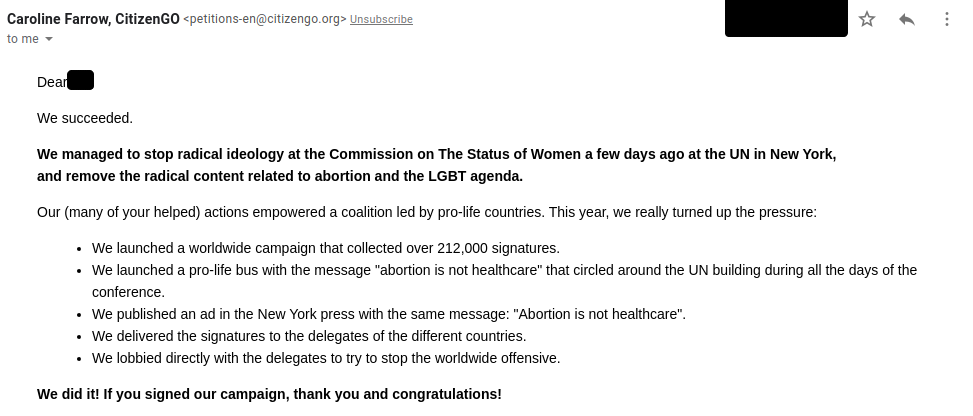Gender Critical Christian Campaigner claims hollow April Fools victory against 'radical content related to abortion and the LGBT agenda' at UN summit on Women